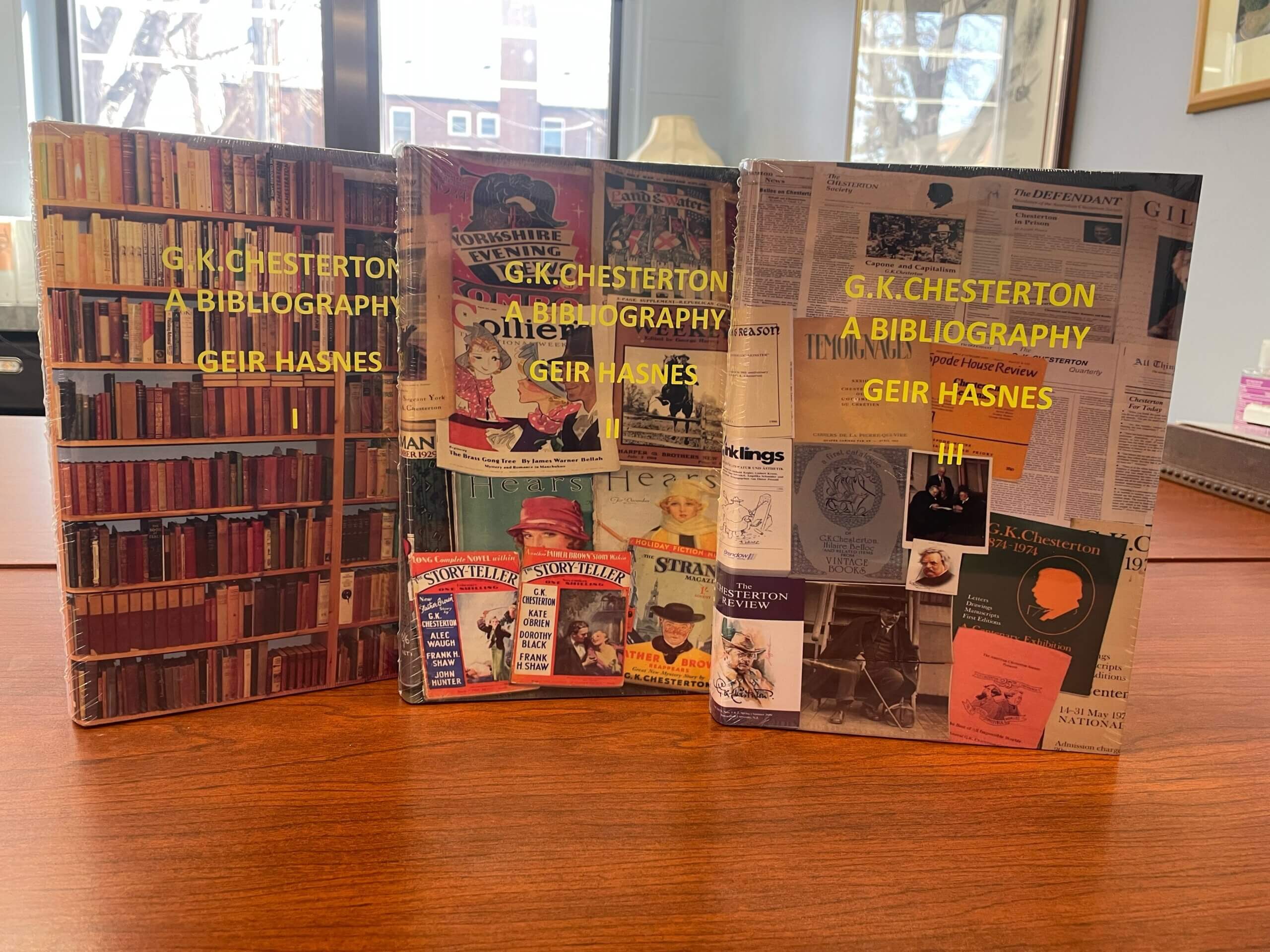 A new and comprehensive G.K. Chesterton bibliography by the Chesterton collector Geir Hasnes. It comes in three hardbound, sewn volumes, with ribbons and dust-jackets.