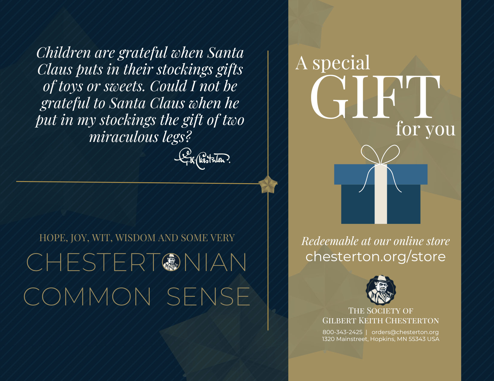 Send the gift of Chesterton to a loved one! Choose any amount.